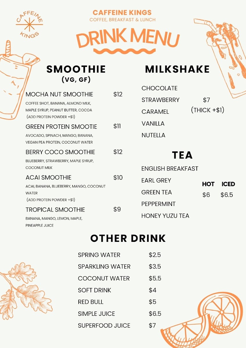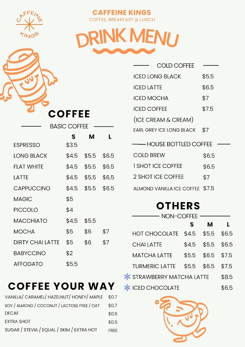 Each dish is designed with care, reflecting the dedication of the friendly staff who go above and beyond to enhance your experience. Caffeine Kings is not just a café—it's a community hub to savor both flavor and connection.
